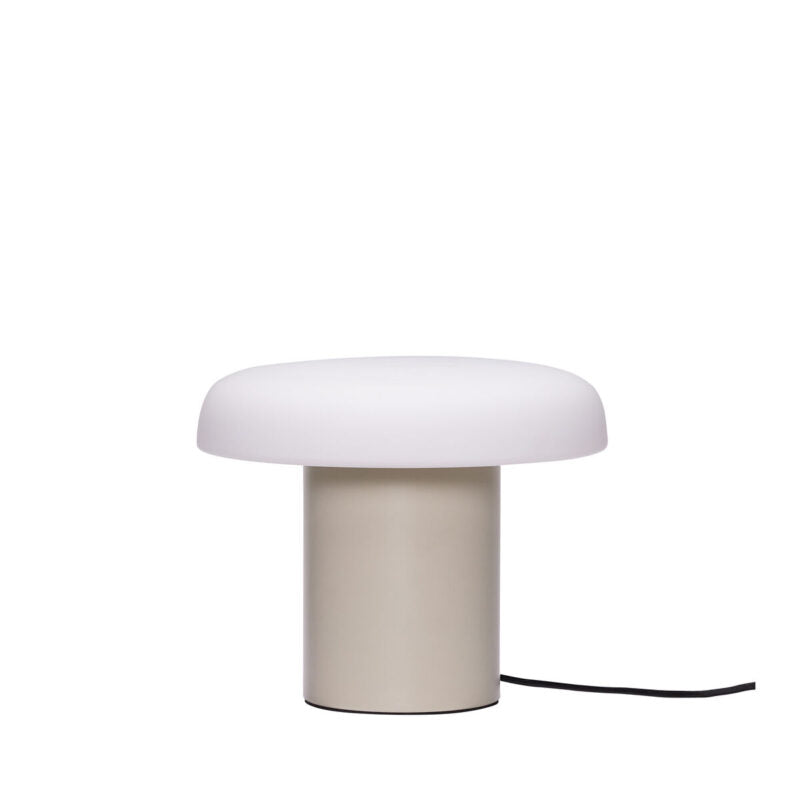 Con su base color arena y su encantadora forma de hongo, esta clásica lámpara de mesa aporta un toque de fantasía y calidez a cualquier espacio. Fabricada en elegante cristal y metal resistente, cuenta con una suave pantalla opalina que difunde la luz con gran belleza, creando un ambiente acogedor y atractivo.